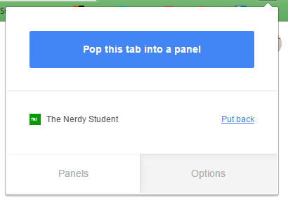 To put it back into Chrome, simply click on the Panel Tabs extension and then click ‘Put back’. The tab you had in a floating windows will go back into Chrome.
