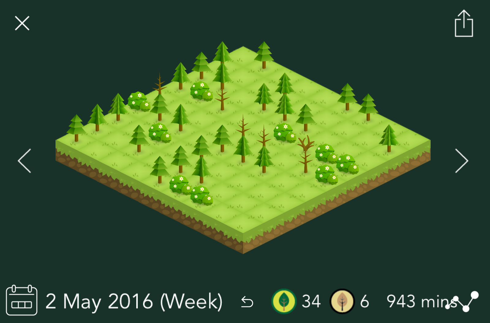 A great feature is that you can see your forest for a certain day, week, month or year. It also tells you how long you have focused for that week, and gives you a chart of the time you focused per day. It’s really cool to see your forest grow over time.